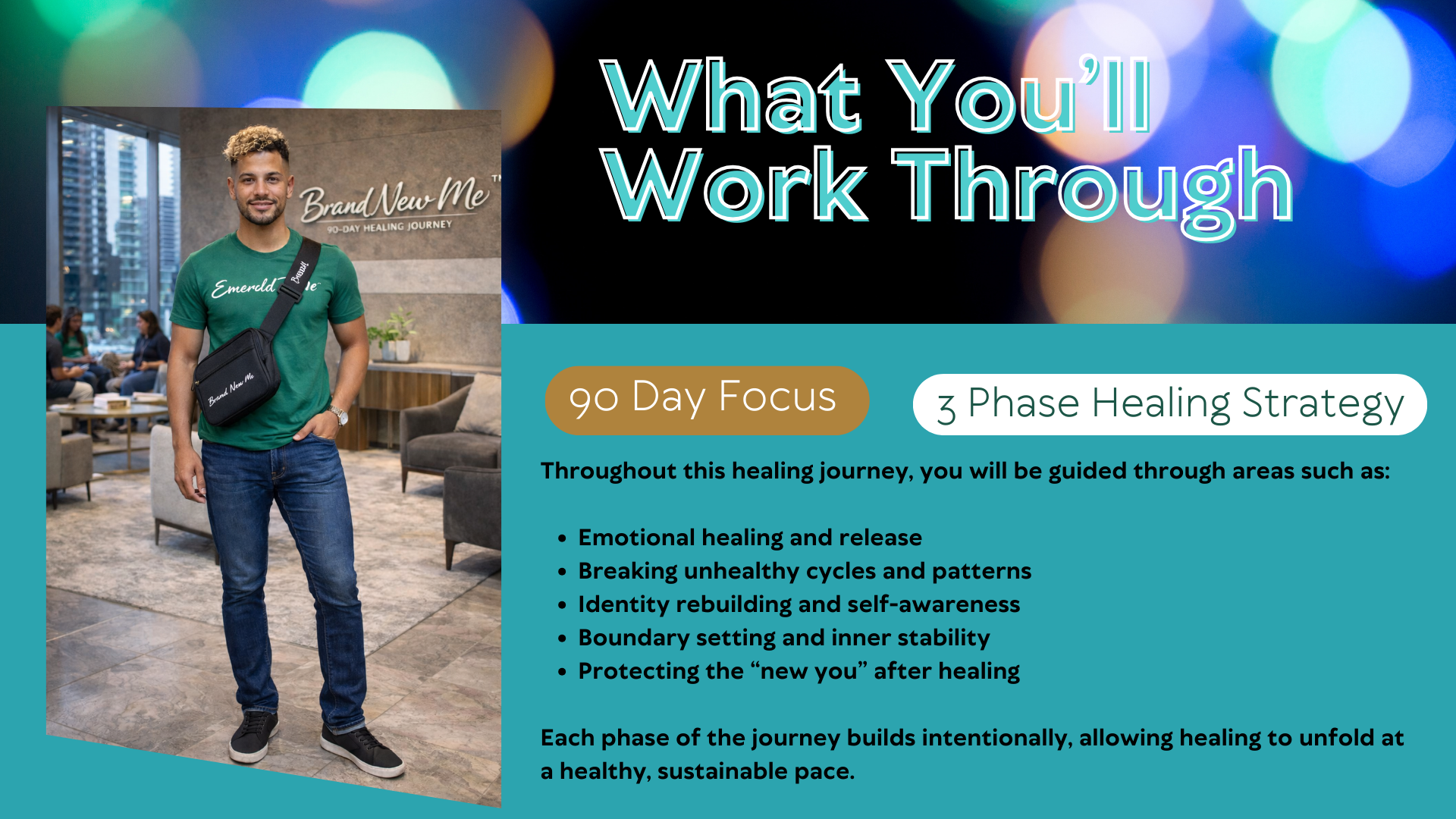 The Brand New Me™ Healing Journey is a 90-day transformational experience designed to help you heal from the inside out, release emotional weight, and step into a renewed sense of clarity, confidence, and purpose.